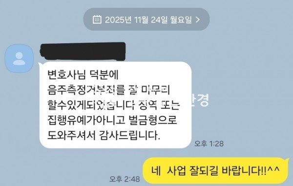 음주측정거부 사건으로 큰 걱정을 안고 찾아오신 의뢰인님을 징역이나 집행유예 없이 벌금형으로 마무리할 수 있도록 도왔습니다.